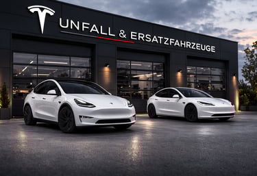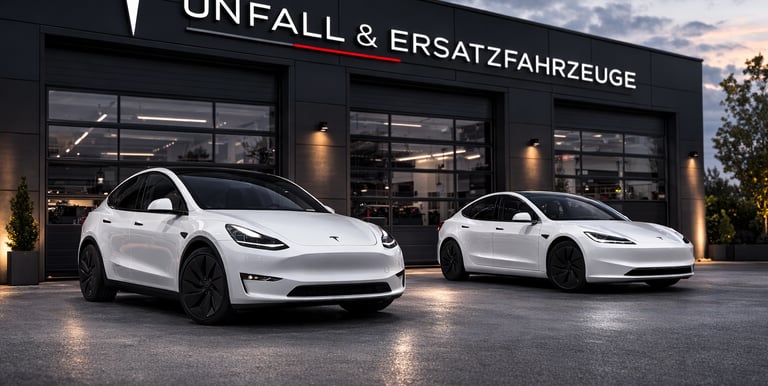 HK Autovermietung Wandlitz bietet Ersatzwagen bei Unfall und Werkstatt, inklusive Tesla Model Y und Model 3.